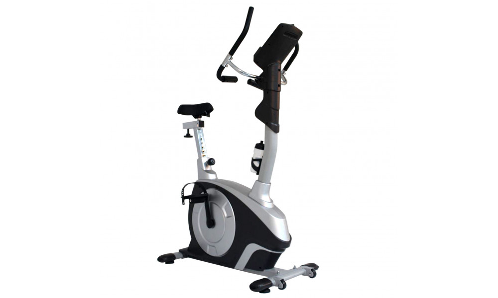 Вертикальный тренажер с маховиком 12 кг и 16-ти ступенчатой электромагнитной системой нагружения. Регулируемые ремни на педалях и регулировка сиденья в вертикальной и горизонтальной плоскости позволяют подобрать удобную посадку для тренировки.
